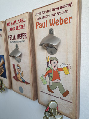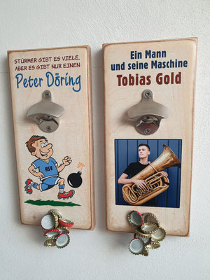 Grillen, chillen und ein Bierchen killen...mit dem richtigen "Werkzeug" macht das noch mehr Spaß. Ein Wandflaschenöffner, personalisiert nach Wunsch. Hält bis zu 20 Kronkorken. Nennen Sie uns einfach im Bestellvorgang Ihren Wunschtext mit Name, Beruf, etc. Fotos bitte per Mail an info (at) muellerskiste.de. Sie erhalten zeitnah einen Entwurf per Mail. Nach Druckfreigabe/Änderungswünschen wird Ihr Wandflaschenöffner gefertigt. Gut zu wissen: Nach Auftragsabschluss werden alle personenbezogenen Daten aus unserem System gelöscht.