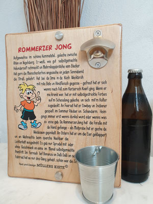 Erwachsene Dorfkinder lieben Ihre Heimat...und trinken auch gerne mal ein Bierchen. Mit diesem ganz besonderen Flaschenöffner werden Erinnerungen wach...weißt Du noch wie's früher war? Das Geschenk für alle Kalwicher Jonge, Rommerzer Jonge und alle anderen Naturburschen der 60er und 70er Jahre. Auf Wunsch personalisierbar mit Namen und eigenem Foto, somit perfekt geeignet z.B. als Geschenk zum 60. Geburtstag. Handwerklich sauber verarbeitet, und nicht vergleichbar mit diesen ganzen Billigteilen aus Fernost. Ein ordentlicher Befestigungssatz ist inclusive.